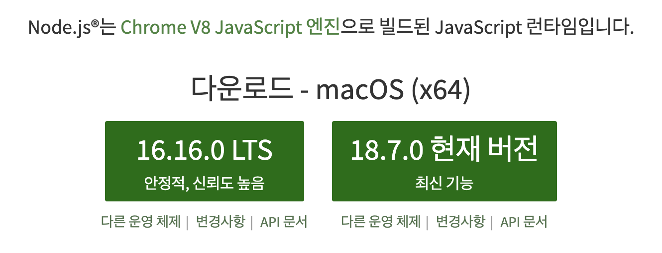 LTS는 장기간 지원해주는 안정적인 버전이며 주로 Node로 서버를 운영할 때 사용